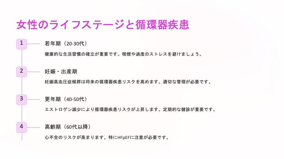 女性の循環器疾患で重要なライフステージと女性に特有な症状の認識